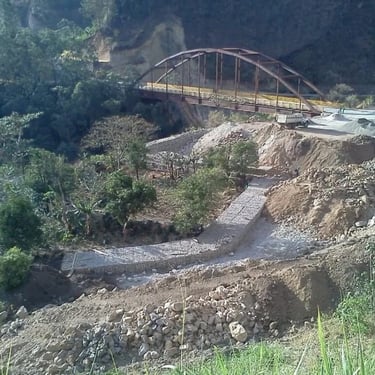 Ejecución de obras de infraestructura vial que incluyeron la construcción de muros de contención en concreto reforzado, muros en gaviones, cunetas en concreto y alcantarillas. Estas intervenciones mejoraron la estabilidad del corredor vial, el manejo de aguas y la seguridad de la vía.