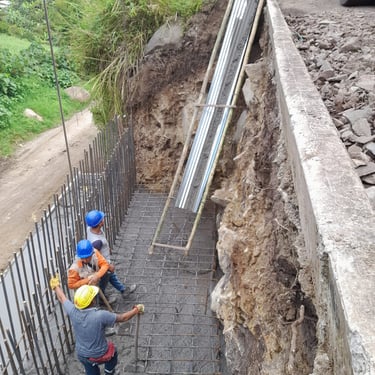 Construcción de cunetas, muros en gaviones y muros reforzados, orientadas a la protección de la vía frente a procesos de erosión y deslizamientos, contribuyendo a la estabilidad y conservación de la infraestructura vial.