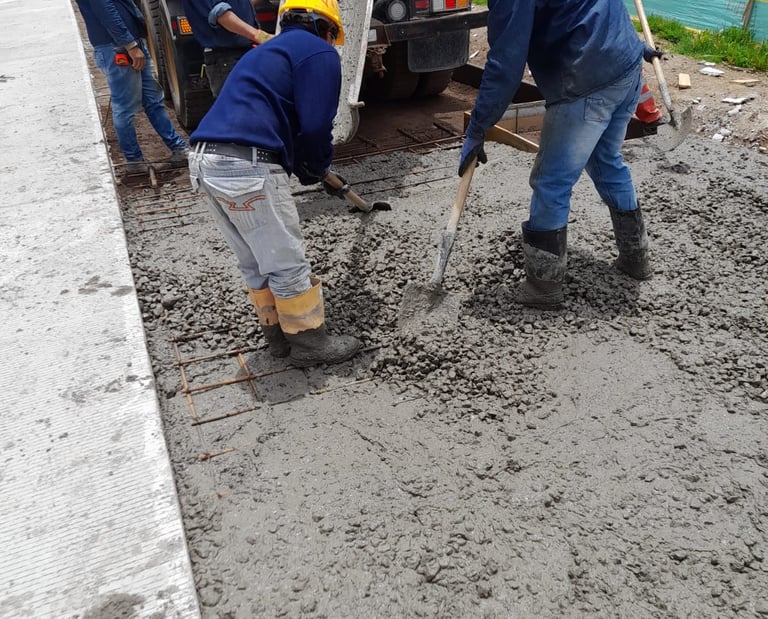 Ejecución de pavimentos en concreto rígido (MR), ofreciendo alta resistencia estructural y mayor vida útil.