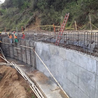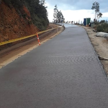 Ejecución de obras viales que incluyeron pavimentación en concreto rígido (MR), construcción de muros de contención reforzados, cunetas y alcantarillas. El proyecto estuvo enfocado en la estabilización del terreno, el control de aguas y el mejoramiento de la seguridad y funcionalidad de la vía.