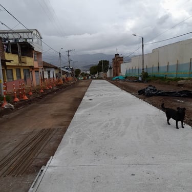 Mejoramiento de la infraestructura vial urbana mediante pavimentación en concreto rígido (MR), construcción de cunetas, alcantarillas y bordillos. La obra contribuyó al ordenamiento vial, al adecuado manejo de aguas lluvias y a una movilidad más segura y eficiente.